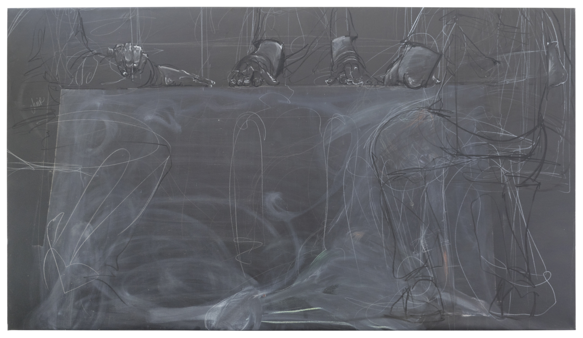 Chalk, charcoal, graphite, oil pastel, grease pencil, sharpie and blackboard ground on canvas