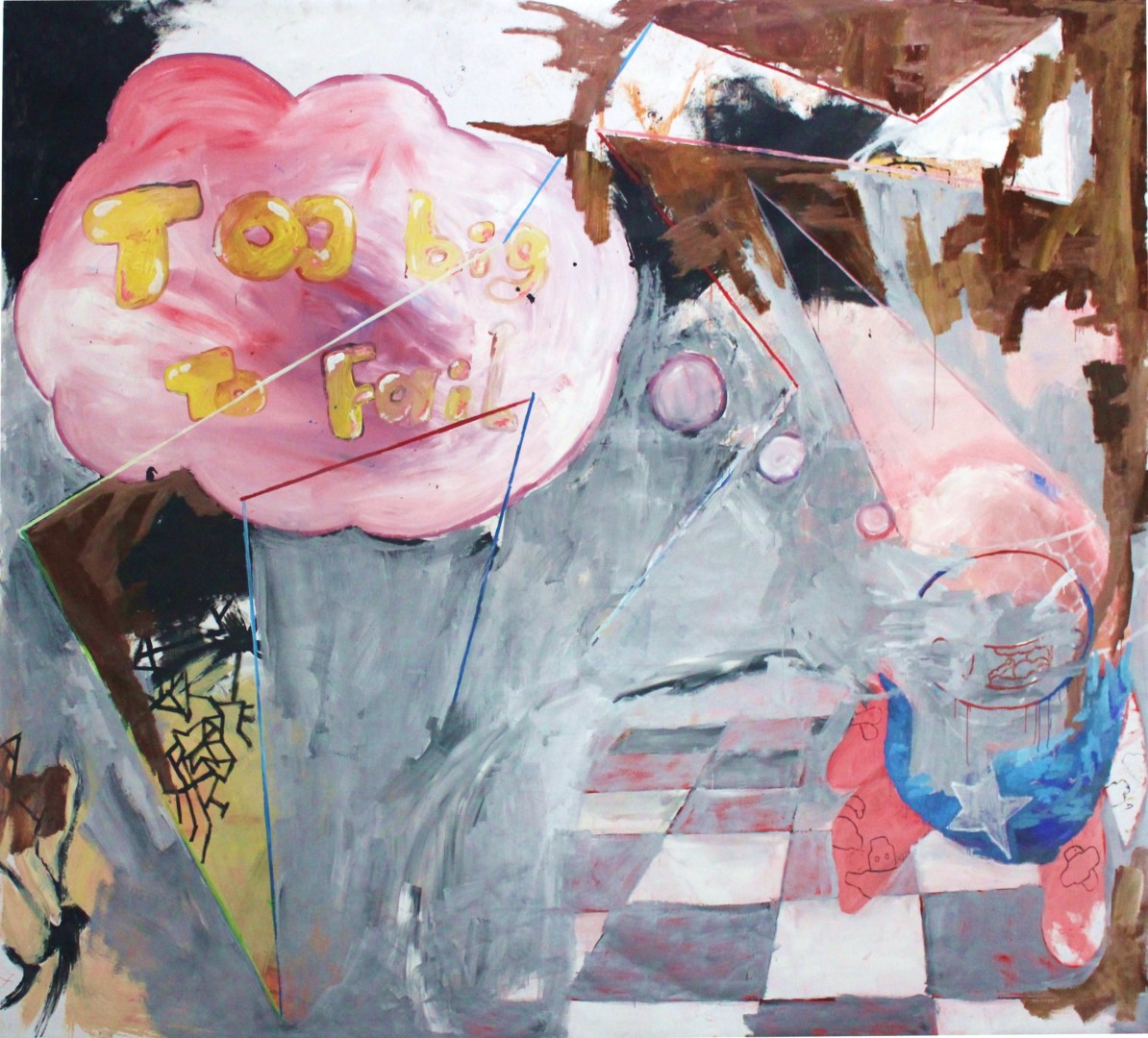 Acrylics and laquer on plastic-tissue, fixed to a hanging wood