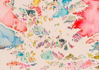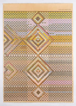 In Above, between and in Von Mertens, breaks away from the quilted fabric constructions for which she is renowned. Concentrating on three sources of inspiration including patterns left behind from the artist’s nutritional juicing; aura portraits interpreted from contemporary aura photographs; and the phenomenon of the aurora borealis, Von Mertens focuses on color and hand dyed images.