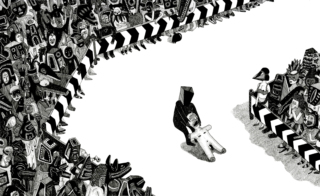 A female voice-over delivers a description of the artist’s research methods, both retracing the temporary structure from archival evidence as well as filling in the gaps by drawing upon other case studies which share the striking black and white striped façade of the Yugoslav Pavilion, such as the Adolf Loos house for Josephine Baker and the British navy fleet camouflage.